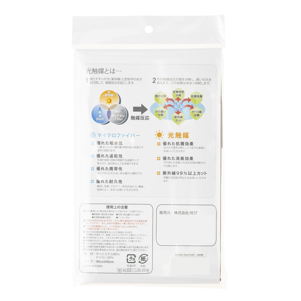 「エクセレントタオル」は、抜群の吸水性をもつマイクロファイバーに光触媒加工を施したタオルです。